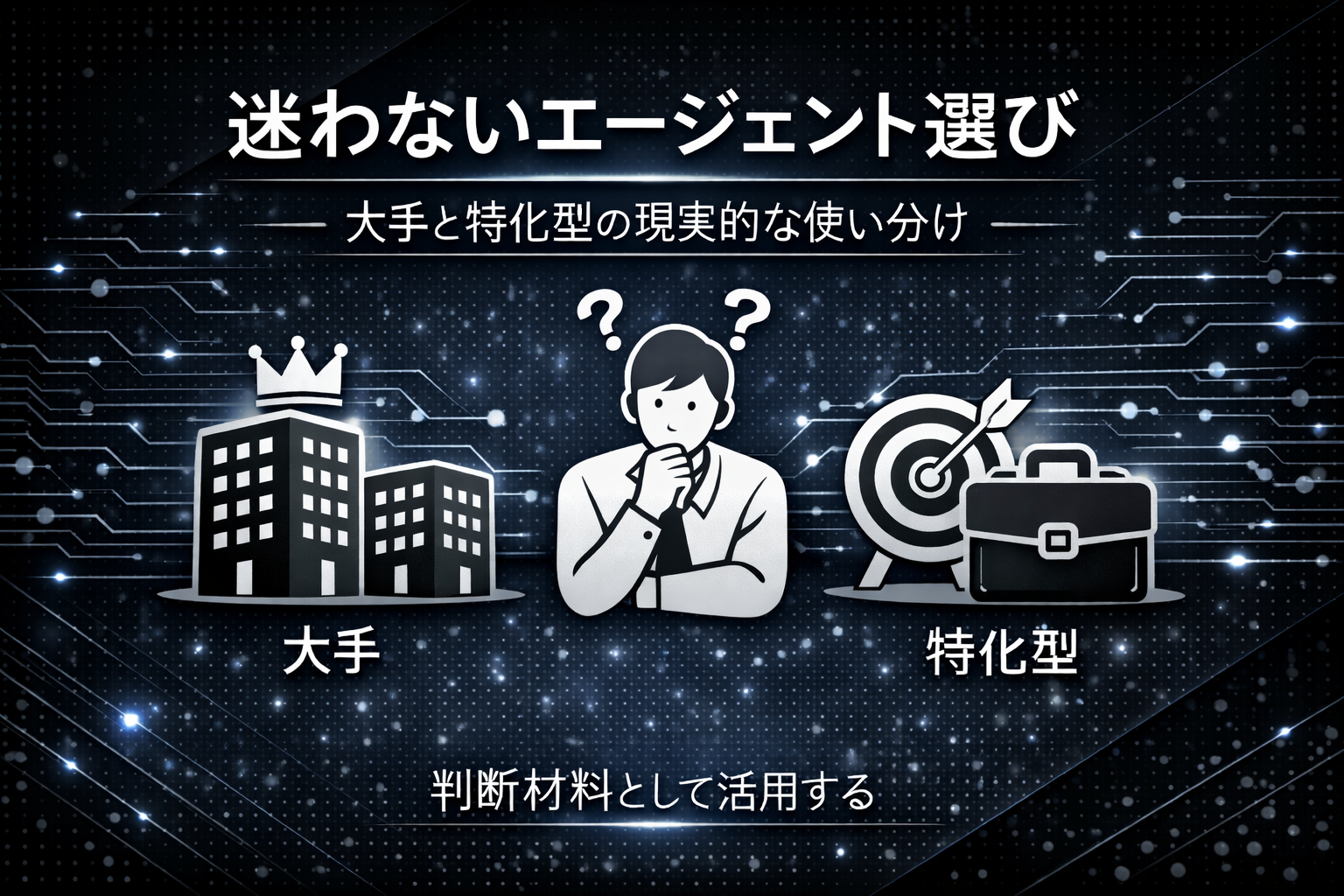 組み込みエンジニアの場合、まずは求人数が多い大手エージェントで市場全体を把握し、必要に応じて特化型エージェントを追加するのが現実的です。私自身もまず1社だけ利用し、情報整理に十分役立ちました。